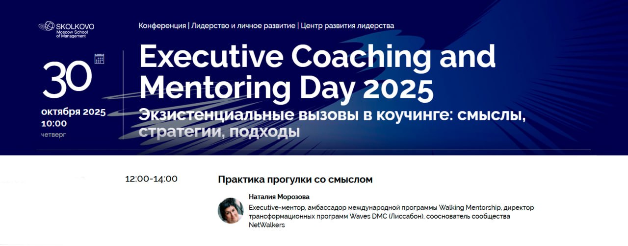 ✨ А 30 октября я выступлю в Сколково на Executive Coaching & Mentoring Day (https://www.skolkovo.ru/events/30102025-executive-coaching-and-mentoring-day/)